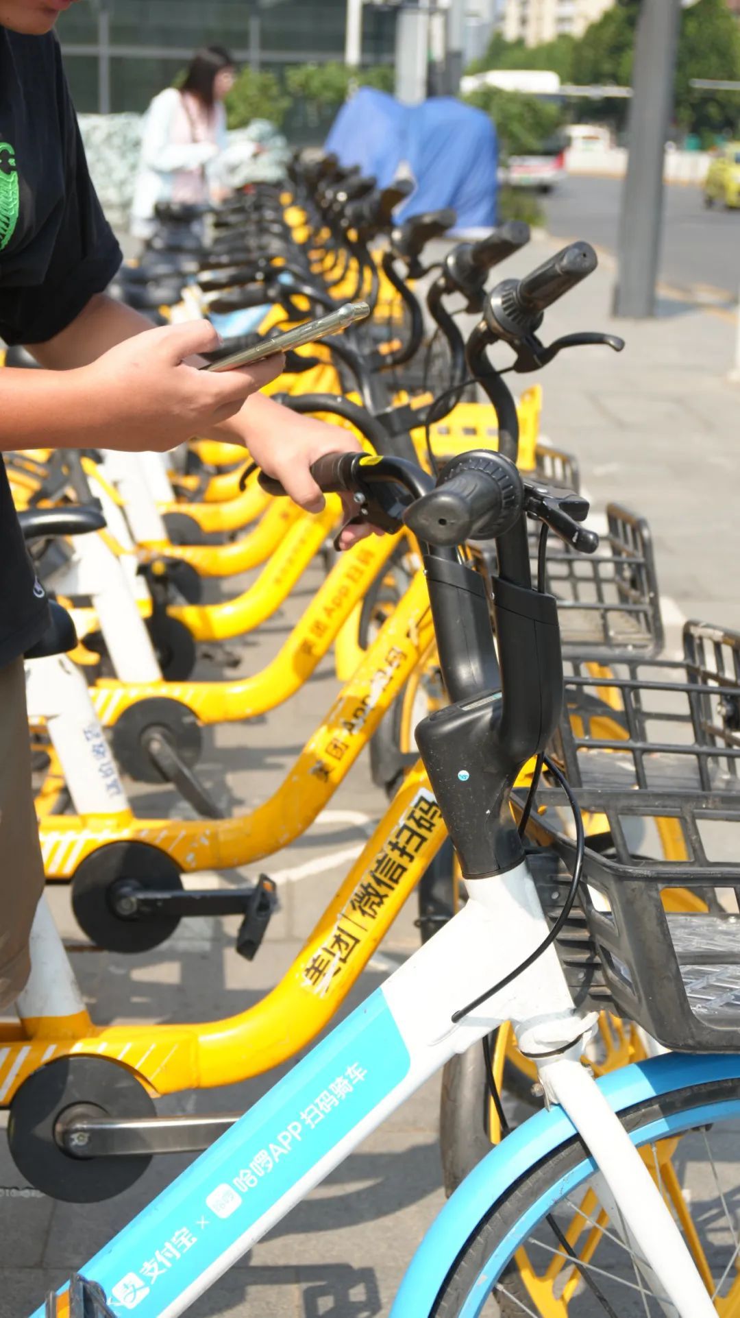 ▲摆放整齐的单车,成为街头文明风景线