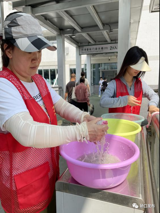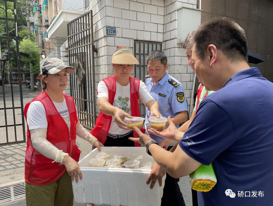 考虑到天气炎热,志愿者们体力消耗较大,3506社区提前熬制绿豆汤,并送往各个劳动点位。一碗碗清甜的“爱心绿豆汤”下肚,志愿者们再次铆足干劲,精神饱满地投身到“清洁家园”活动之中。