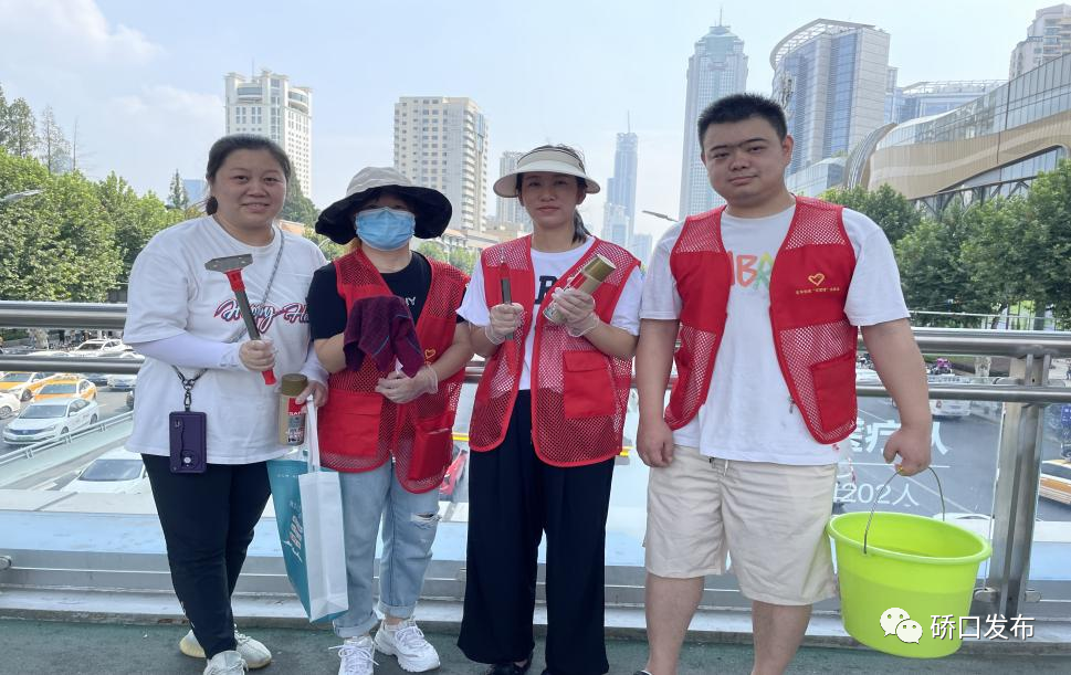 武汉新世界酒店的志愿者们,特意带来酒店最先进的清洁工具、自制最佳比例的清洁剂、倾注最大的热情,用“五星级”的清洁卫生服务标准扮靓同济健康天桥的“颜值”。