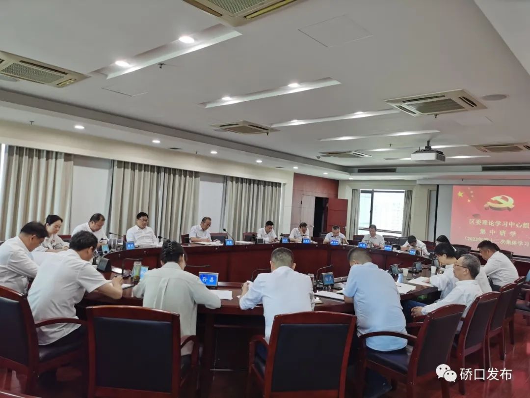 近日,硚口区委理论学习中心组开展集体学习,围绕深入学习贯彻习近平总书记在文化传承发展座谈会上的重要讲话精神,开展研讨交流。区委书记周耕主持会议并讲话。