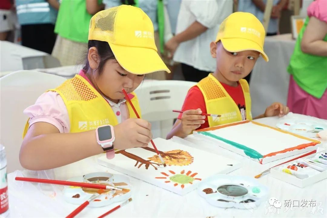 会场周边围绕着7个公益专题市集展位,不少的市民朋友在市集展位中间流连忘返,展位有手工作品义卖、眼科义诊、桌面互动游戏、VR游戏体验、魔术互动、宠物周边、消毒产品义卖等,当天下午还举行了“硚见花开”亲子互动绘画活动,精彩纷呈。