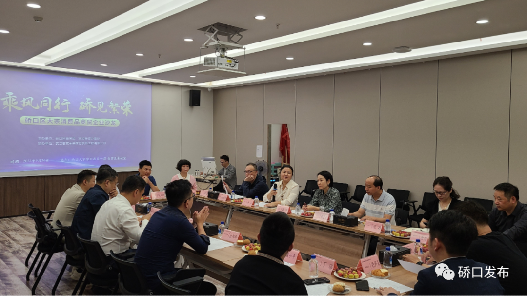 9月26日上午,“乘风同行·硚见繁荣”——2023年硚口区大宗消费品商贸企业沙龙在南国大家装索菲亚会议室成功举办。此次活动由区商务局、宗关街道主办,武汉思索未来家居装饰工程有限公司协办。聚集了思索未来、宜家家居、尚品宅配、工贸家电、中成楚迪汽车等家居、家电、汽车行业的13家大宗消费品商贸企业,区政协副主席郭军、区市场监管局、区金融局到会参与活动。