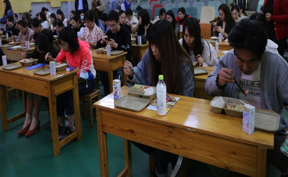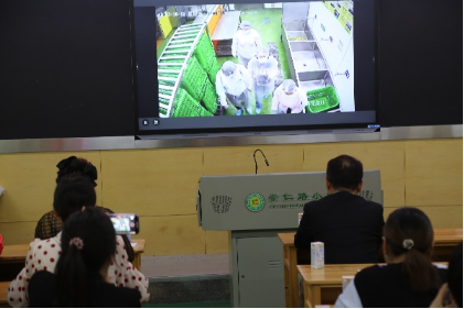 会议首先向各位代表汇报了食堂管理工作情况,详细介绍了食堂工作流程、食品卫生管理、安全操作规范、食堂人员培训等。现场调播了当天早上配送食材的视频监控,家长们了解到所有采购的食材都是经过精挑细选,都不约而同的拿出手机拍照和录视频。