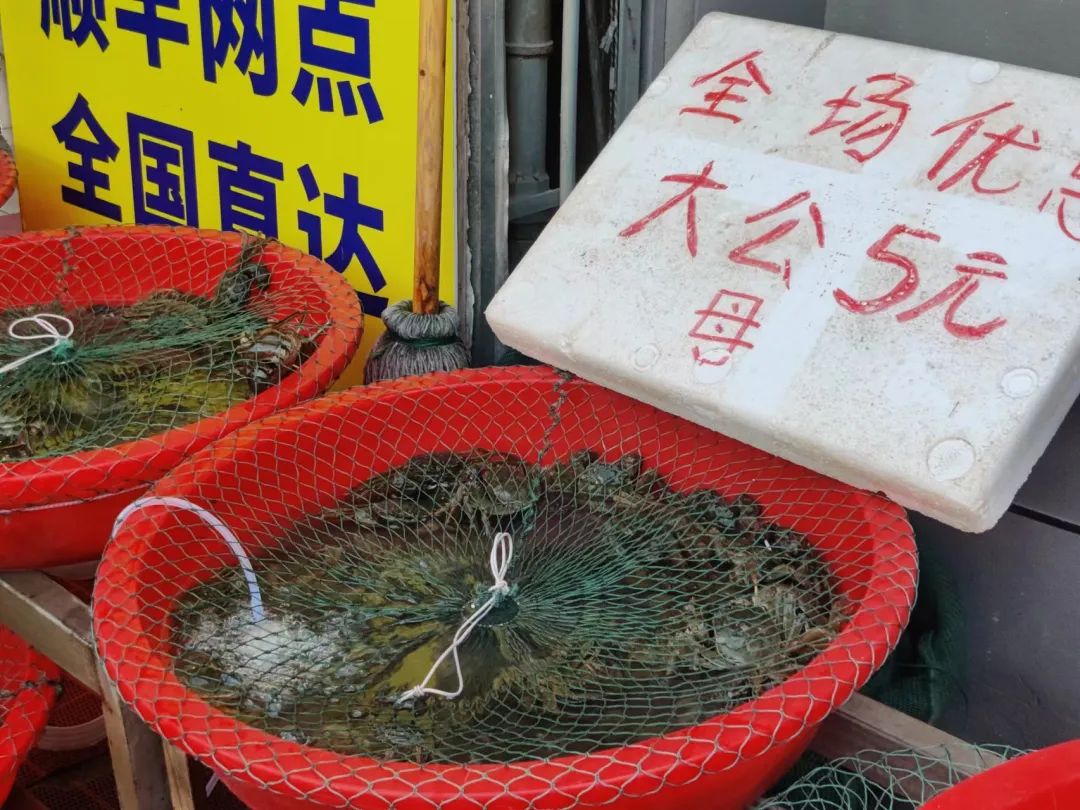 往里看去,短短一条街上有近30家从事螃蟹相关行业的商户,从卖螃蟹、加工螃蟹到吃螃蟹,可谓包含螃蟹的完整商业链,应有尽有。但这里要提醒一句,买螃蟹建议步行进去,街巷狭窄、店铺很多,步行才逛得尽兴。