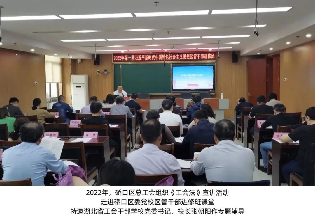 2022年,硚口区总工会在汉正街云尚·武汉国际时尚中心,举行硚口云尚网络直播行业联合工会成立暨硚口区新就业形态劳动者集中入会仪式,维护权益助推经济提高满意度,落实“法院+工会”诉调工作机制,集体协商“四步谈薪”工作法被编入全总《集体协商案例选编》,区总工会获得市总工会组织的首届集体协商竞赛一等奖。
