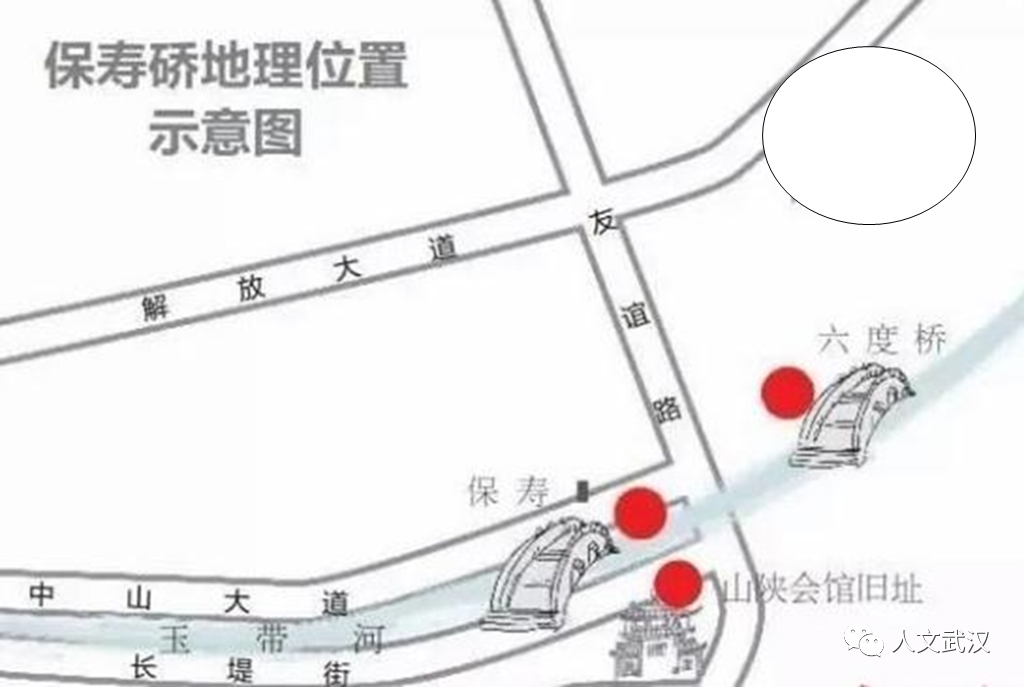 为了沟通玉带河两岸堤内堤外集市的联系,在玉带河上,从硚口开始,商户陆续修建有30余座桥,以方便通向后湖及周边邻县。保寿桥,就是这30多座桥中之一。