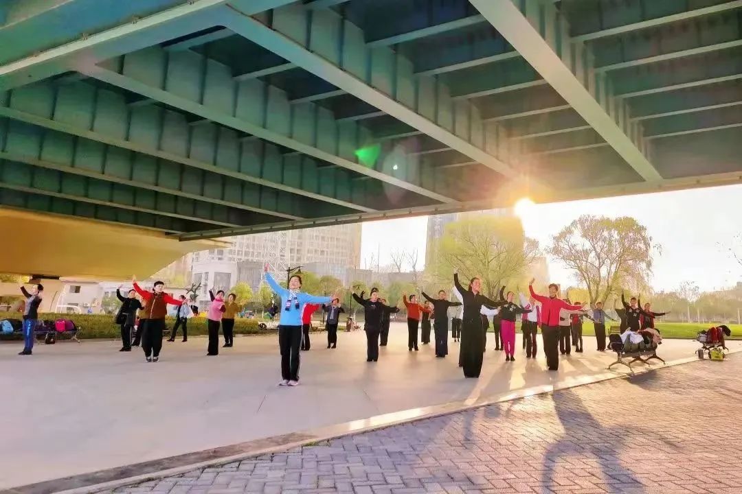还城市以绿意,予生活以生机。随着江滩的环境越来越好,“汉江湾”成为硚口人乐享生活的第一选择。无论何时,举目可见舞蹈队、轮滑队、太极队排练,踱步可赏绿意汉江、蓝色古田桥。