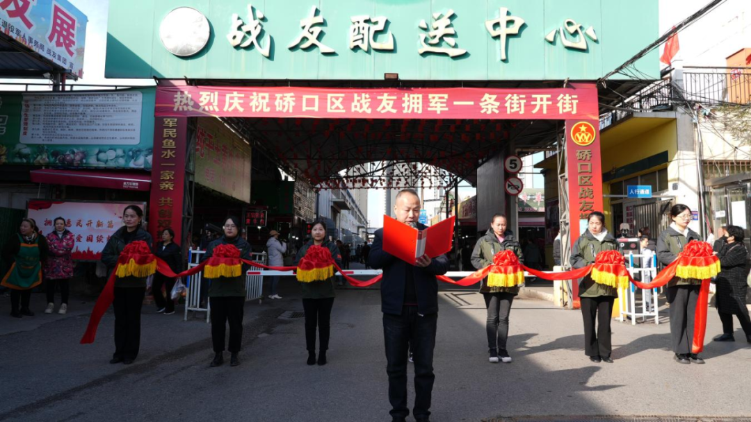 近日,位于古田一路长康街的硚口区“战友拥军一条街”开街仪式在热烈的氛围中拉开了序幕,首批25家“拥军联盟商户”正式授牌亮相,为军人军属、退役军人和其他优抚对象提供优先优惠优质服务。硚口区人武部、区退役军人事务局、易家街和区街两级退役军人事务系统以及战友集团负责同志出席了仪式,辖区军人军属代表、退役军人代表以及社区居民也来到现场,共同见证了这一重要时刻。