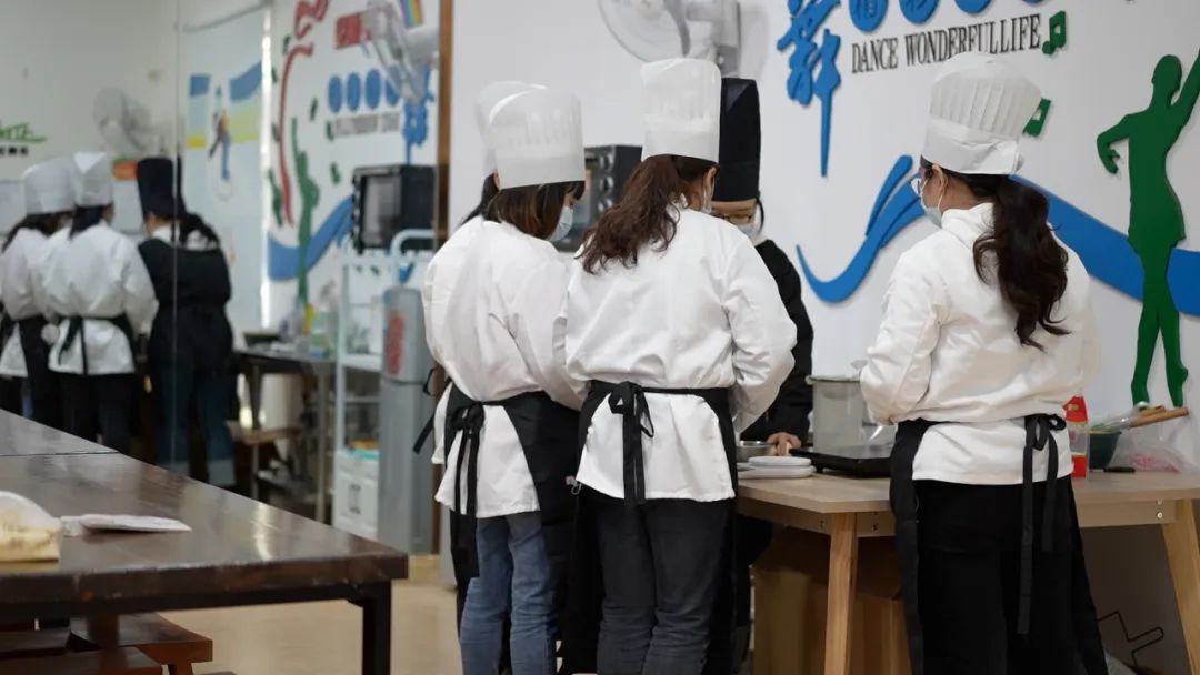 在幸福食堂的不远处,一阵阵蛋奶的香味扑面而来,清晨公益团队正在带领着他们的学员制作蛋挞,开展职业康复训练课程。