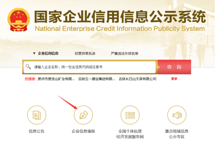 打开国家企业信用信息公示系统(湖北)(http://hb.gsxt.gov.cn), 选择企业信息填报。