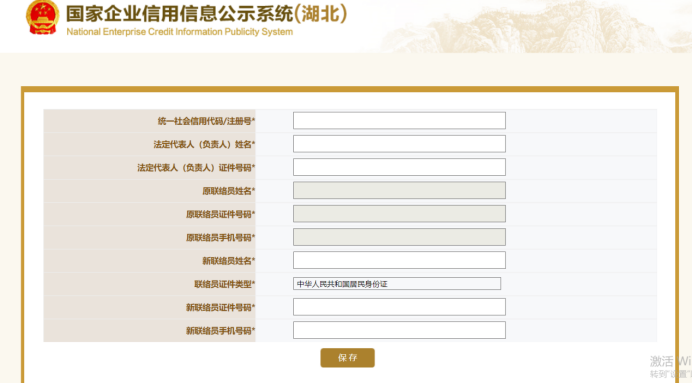 2、若联络员信息发生变化的,在“企业联络员变更”中填写后保存。