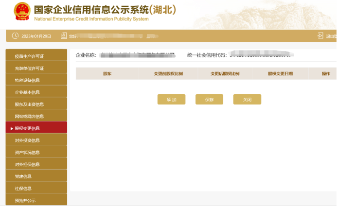 股权变更信息,进入股权变更页面可添加股权变更信息,也可修改或删除信息。如未发生过股权变更的则无需填写此项信息。