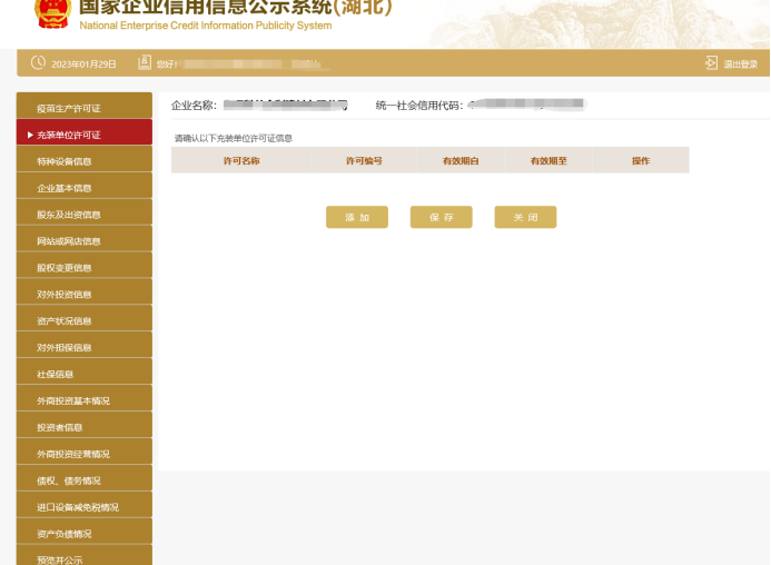 注意:填写年报时系统自动关联出充装单位许可证信息,企业只需确认信息,如不涉及该许可事项,可以跳过此步。