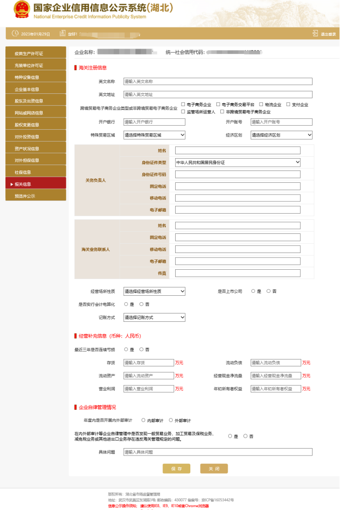 注意:填写年报时系统自动关联出海关企业信息,海关企业需要填写该事项,非海关企业,请直接跳过此步。