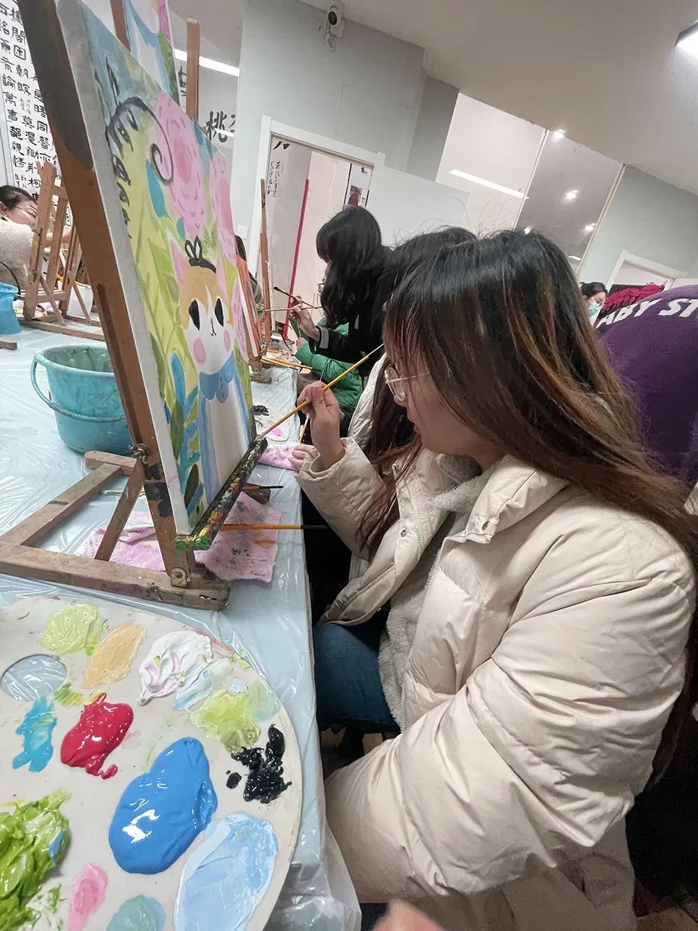 今年28岁,在硚口路工作的王女士是第二次参加青年夜校,得知近期有油画课程上线,她第一时间在网上报名。