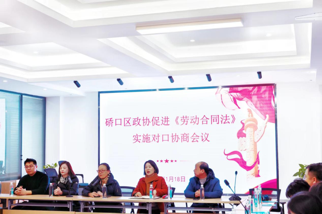 召开这次对口协商会,一是符合汉正街转型升级的需要,作为“四大攻坚”之一的汉正街转型升级,用人方式的法治化是汉正街转型的必然之义;二是维护劳资双方合法权益的需要,通过普及劳动法律知识,建立硚口和谐、有序、稳定的劳动关系;三是发挥大团结大联合政治优势的需要。下一步,区政协将继续发挥自身优势,充分利用街道办事处委员联络站平台,结合“百名仲裁员服务千家企业系列讲堂活动”,组织资深律师为居民群众作普法宣传,定期为居民群众提供劳务咨询服务。