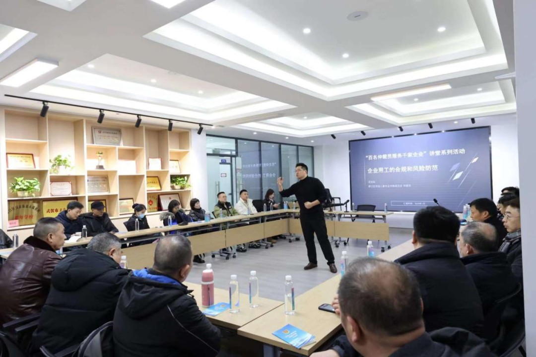 会上,区劳动人事争议仲裁委员会仲裁员庄克纵律师专题讲授《企业用工的合规和风险防范》。讲座围绕劳动合同的签订、效力、期限、工伤认定等方面问题进行了深入浅出的讲解,同时根据司法实践,结合企业在经营管理中出现的常见现象举例说明,并现场解答了企业家们提出的相关问题。
