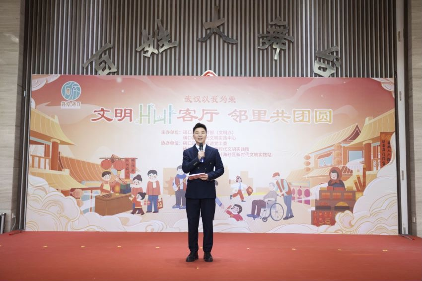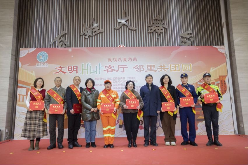 1月23日,由中共硚口区委宣传部、硚口区新时代文明实践中心主办,易家街道党工委、易家街道新时代文明实践所、易家街道竹叶海社区新时代文明实践站承办的“文明HUI客厅 邻里共团圆”硚口区“文明HUI客厅”启动仪式暨2023年度“硚口楷模”“硚口好人”颁奖仪式在竹叶海社区党员群众服务中心举行。榜样人物、市区领导和社区老百姓共聚一堂,共享团圆时刻。