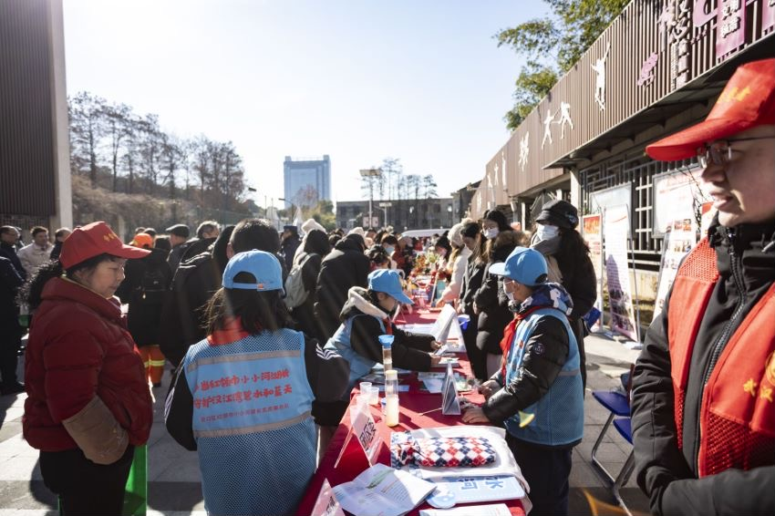 激活“邻”聚力,居民来“赶集”。在社区文明实践广场,由硚口各领域志愿者“坐镇”的“志愿惠·公益集市”干货满满,精心设立的20个摊位各具特色、种类繁多。志愿者们不惧严寒,为居民进行法律咨询、禁毒宣传、环境保护等志愿服务,暖心服务获得居民们的一致好评。