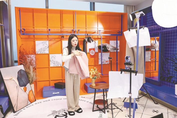 ▲ 汉正街电商主播在直播卖货。