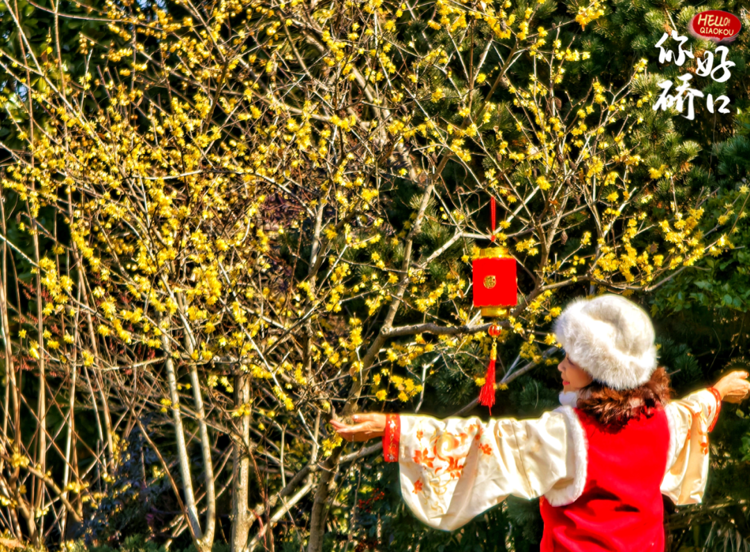 腊梅的清雅与喜庆的灯笼