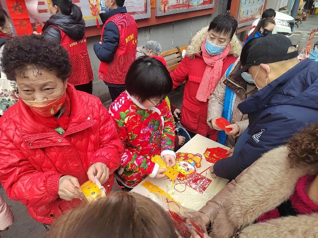 祥和社区的民俗邻里节和便民惠生活活动会场,中国传统民俗文化捏糖人、画糖画、剪窗花、写春联等活动也是人气火爆;红纸翻飞墨香四溢,一副副充满吉祥祝福的手写春联呈现在人们眼前,红纸黑字间映透着欢声和笑脸,大家纷纷感叹:手写对联虽然没有超市卖的精美,但是更有人情味、更加有心意,更能让各民族朋友感受到传统新年的美好。社区邀请到专业人员为居民提供理发、磨刀、修伞、缝补、配钥匙、修鞋等生活服务,真正地解决居民生活中的实际需要。