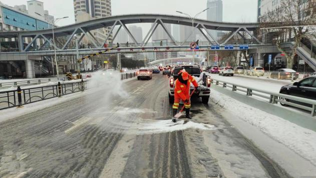 大街小巷和立交、高架、环线等桥梁上,到处可见全民除雪融冰的热力场景
