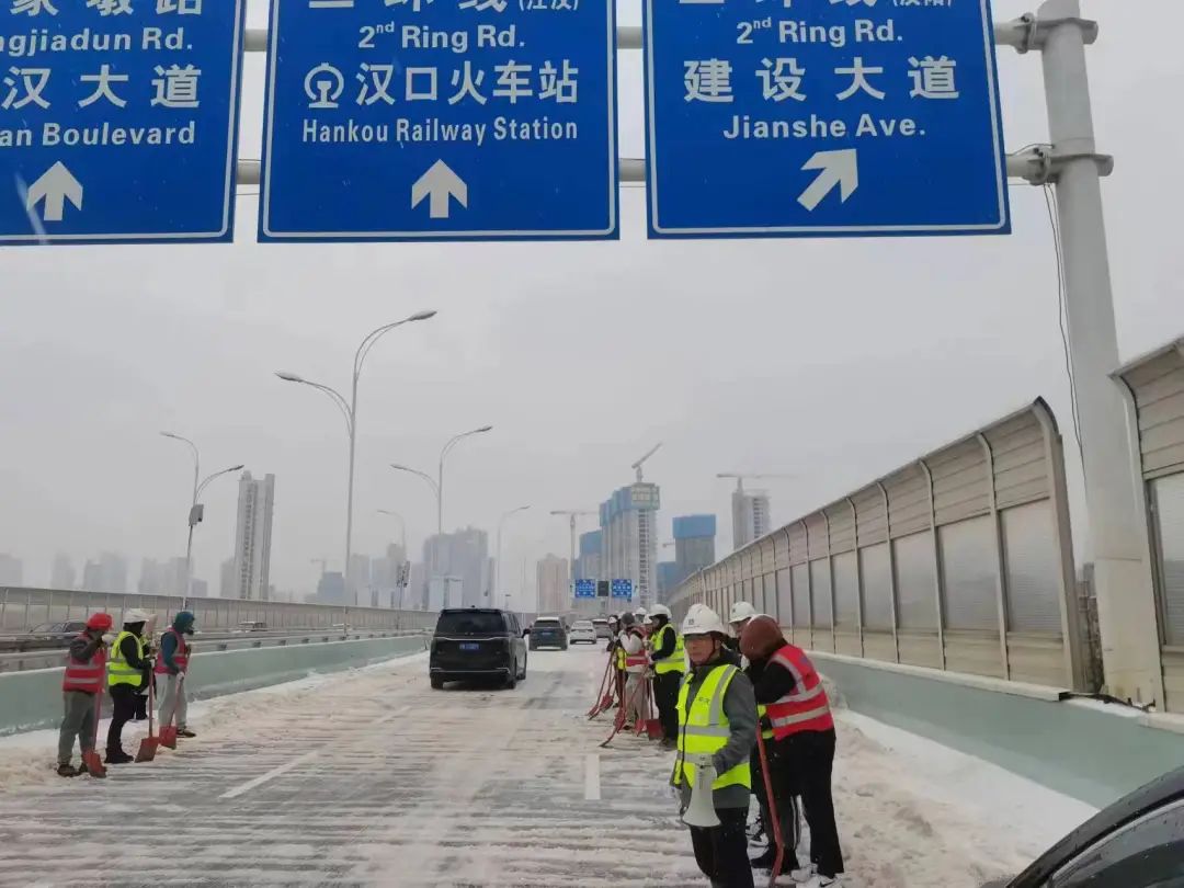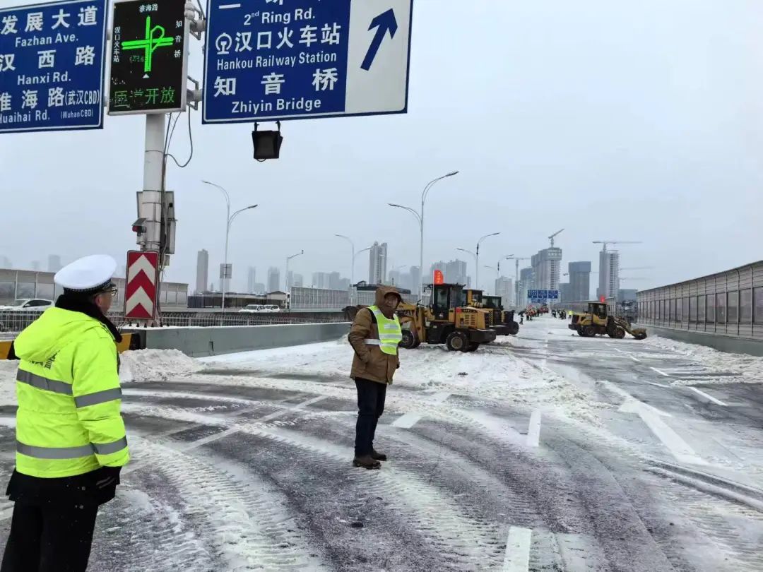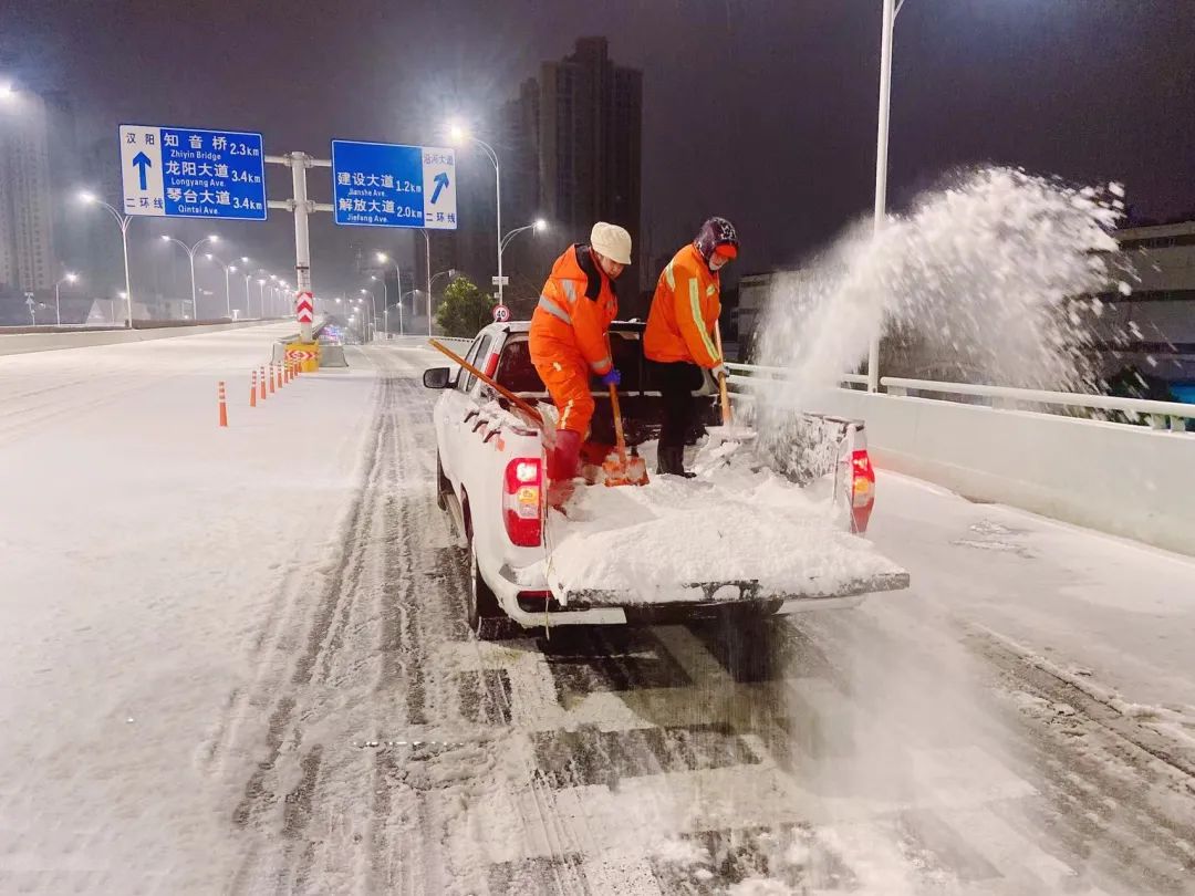 二是做到交通保畅到位。区主要领导带头协调督导、各职能部门和各街道领导在岗组织开展除雪工作。2月21日,硚口区共出动环卫工人、执法队员、辖区机关企事业单位志愿者等各类人员2703余人次,除雪化冰车辆182台次,处置积冰积雪点位5处,清理倒树、处理压断树枝536处,抛洒融雪剂32吨,铺设规整防滑麻袋2270余条。22日凌晨起,硚口区针对辖区2个环线、5个高架、6座桥梁、9个易结冰点位、29条重点路段进行全面调度,出动铲车、渣土车等设备69台,采取“机械+人工”组合作业方式,开展除雪破冰工作。截至目前,全区环线、高架、跨江桥梁路面畅通,积雪正持续清理中。