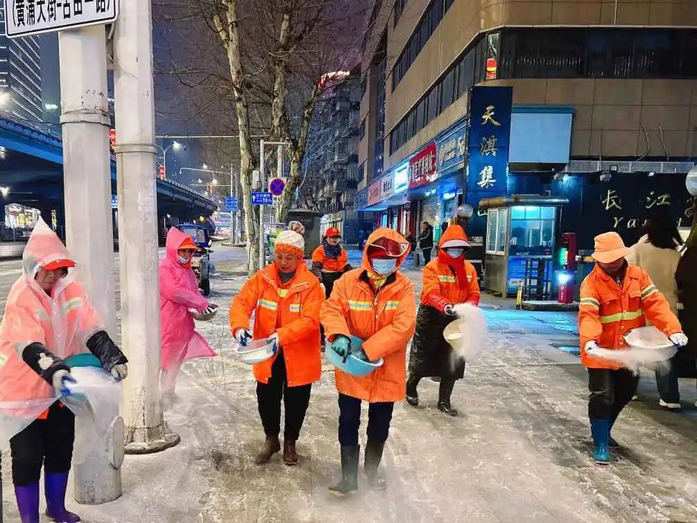 三是做到宣传发动到位。雪初,各街道和相关部门全面发动辖区内大型企业、行政事业单位、社区居民、党员干部、临街商户自扫门前雪,参与融雪除冰工作。截至目前已发放“门前三包”倡议书4000余份,发动调度各类企事业单位39家,累计出动1850余人次,处理结冰点位200余处。22日清晨起,硚口区共出动环卫工人、执法队员、辖区机关企事业单位志愿者等各类人员11800余人次,除雪化冰车辆599台次,处置积冰积雪点位513处,清理倒树、处理压断树枝615处,抛洒融雪剂275吨,铺设规整防滑麻袋8300余条。发动调度各类企事业单位39家,累计出动1850余人次,处理结冰点位200余处,截至目前,全区主次干道及街巷道路路面交通畅通。