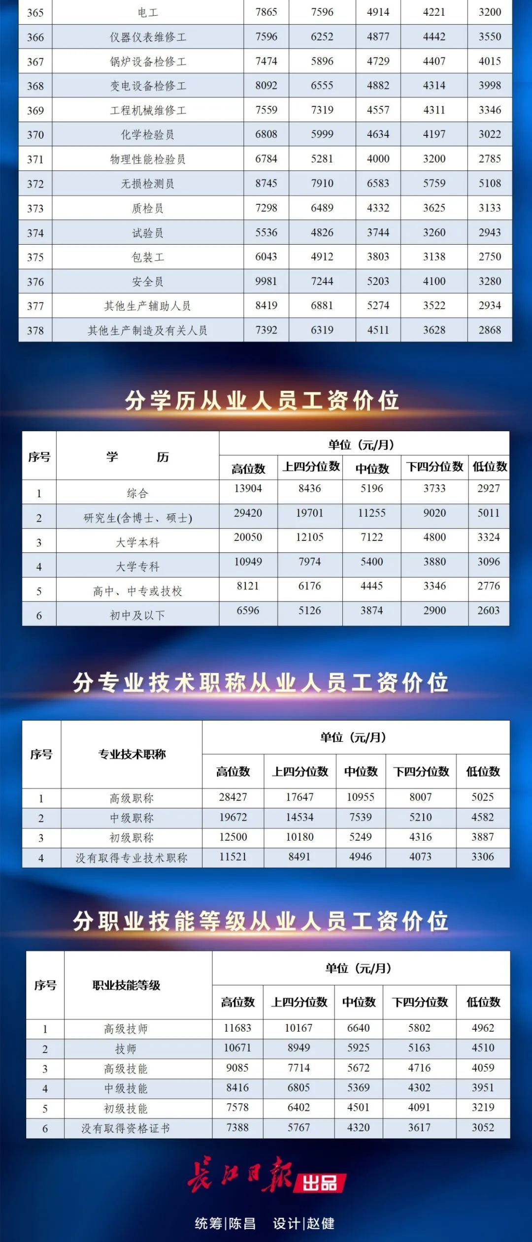与往年不同,今年除发布分职业从业人员工资价位外,还按照劳动者学历、专业技术职称、职业技能等级等维度分别发布工资价位。
