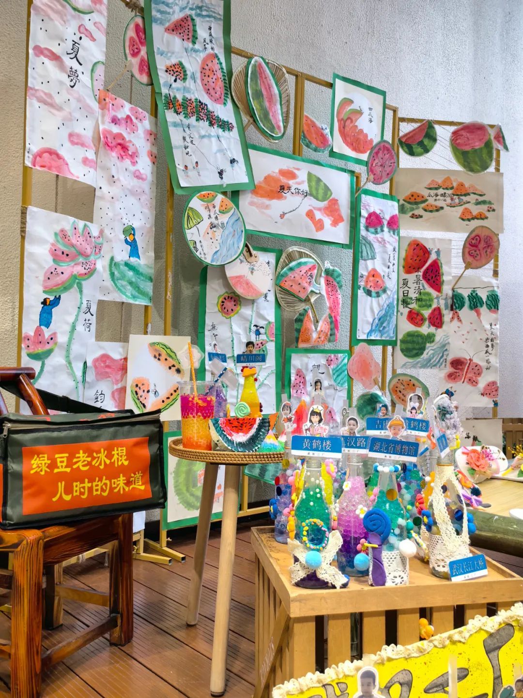 线下市集也热闹不已。“废品艺术品”展览摊位,物品都是孩子们亲手制作,让孩子们在游戏中提升动手能力;非遗项目作品摊位,提现了中华文化的价值与魅力;凉面美食摊位可免费品尝特色美食。