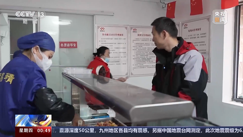 针对部分独居和行动不便的老人,社区还招募了一批送餐志愿者,为老人们跑腿送餐。同时在幸福食堂开辟“小哥窗口”,送餐员给这些不方便的老人送餐上门后,可以享受和老人一样的优惠价格。