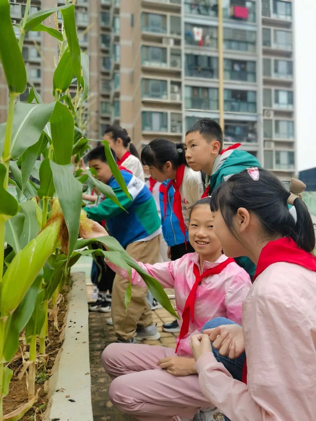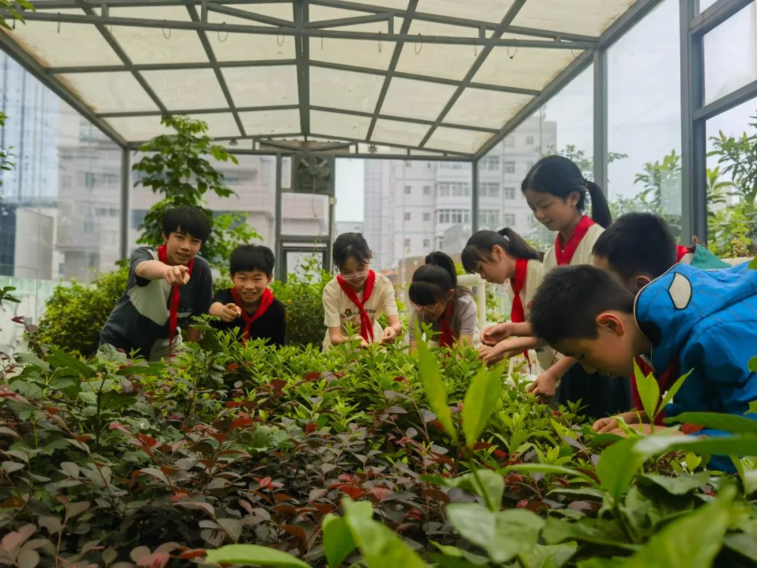 ▲课后服务时间,“小先生”们来到学校“空中农场”参与劳动实践