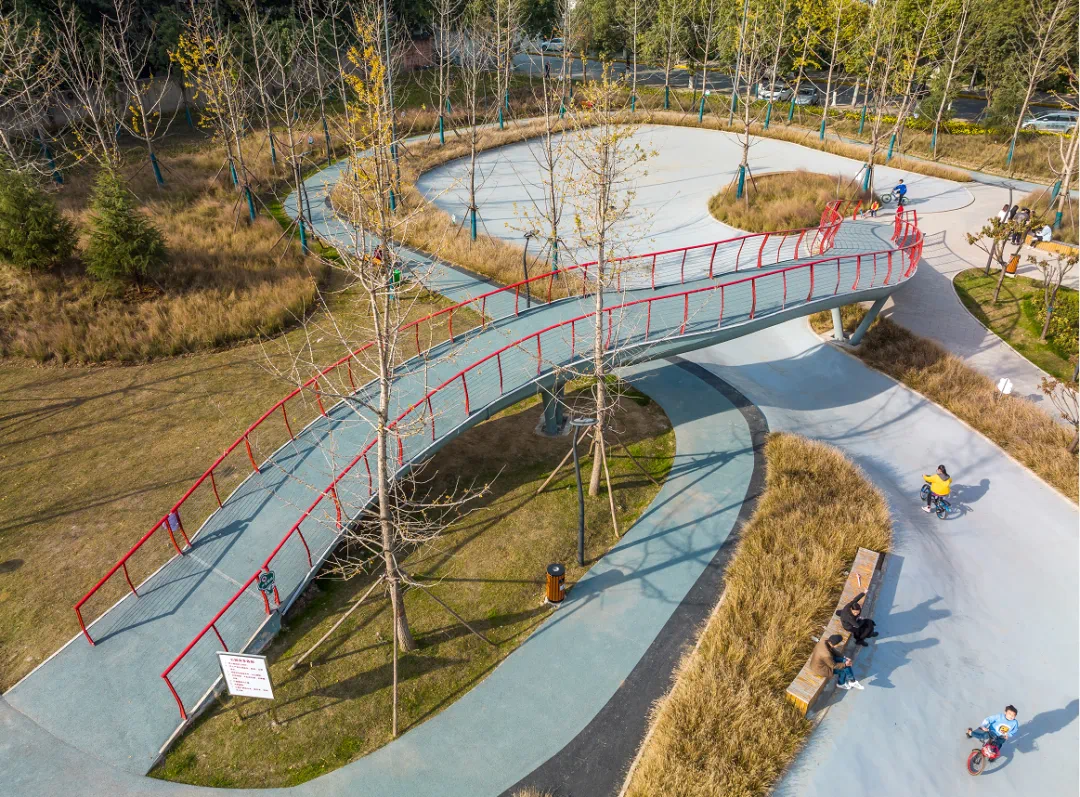 武汉首座滑板主题特色公园,以自由的曲线与弧线相结合营造出多变的空间。