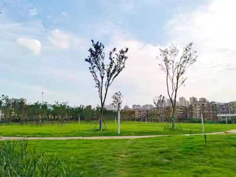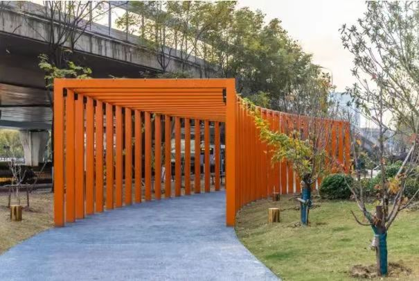 利用植物空间造景、设计林下活动场地、强化植物风貌特征及节点风貌,打造一条色彩斑斓的生机之路。公园有银杏、樱花、粉黛乱子草等特色植物,形成秋季网红打卡点。