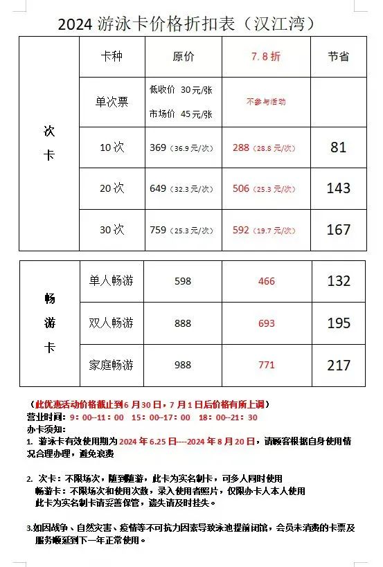 汉江湾游泳池6月28日开放啦~