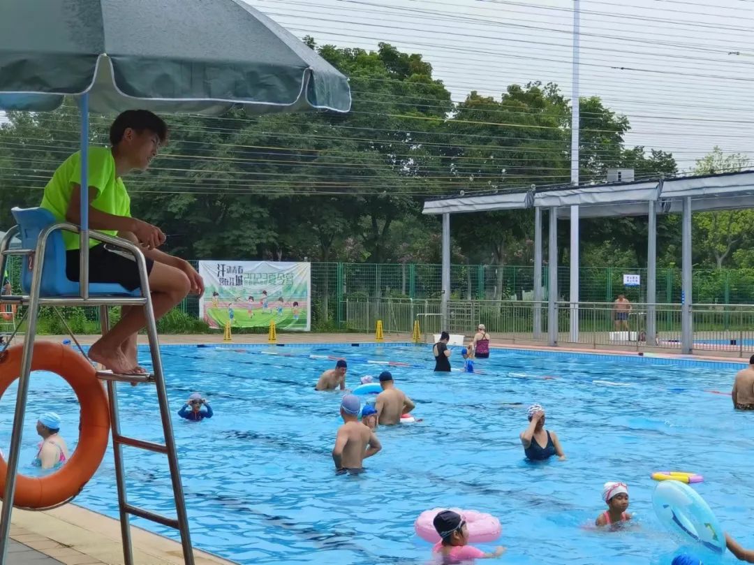同时,游泳池边配置救生员观察台,十多位专职救生员,尽全力确保广大市民朋友的安全。