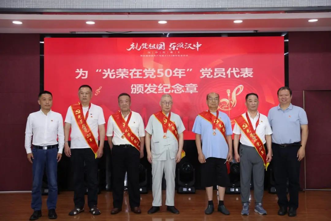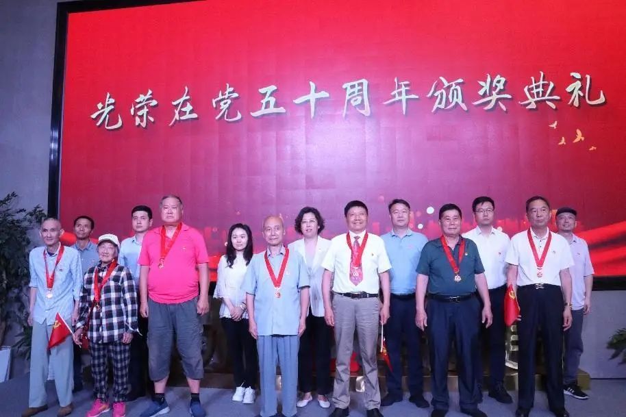 活动现场为党龄达到50周年的党员颁发“光荣在党50年”纪念章,并向他们表示热烈祝贺和崇高敬意。在“光荣在党50年”党员代表的带领下,7名预备期满党员庄重的举起右拳,进行转正宣誓。