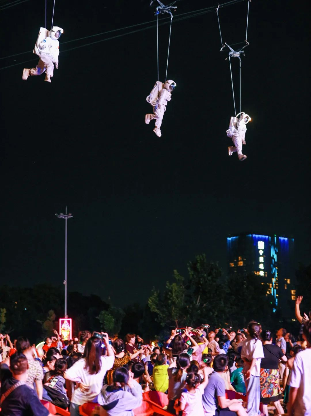 专业演员吊威亚走钢丝,cos仙子、蜘蛛侠,带来惊险的高空秀《英雄归来》