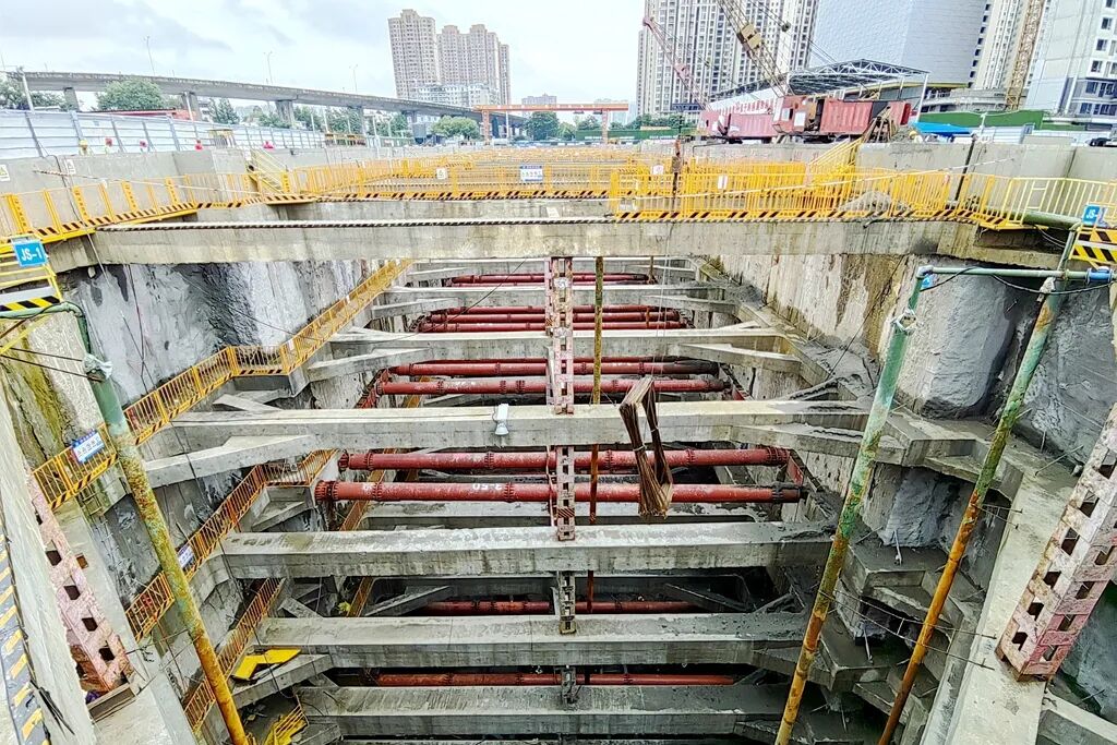 武汉地铁12号线双墩站成功通过汛期考验,日前顺利封底,进入主体结构施工新阶段。