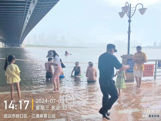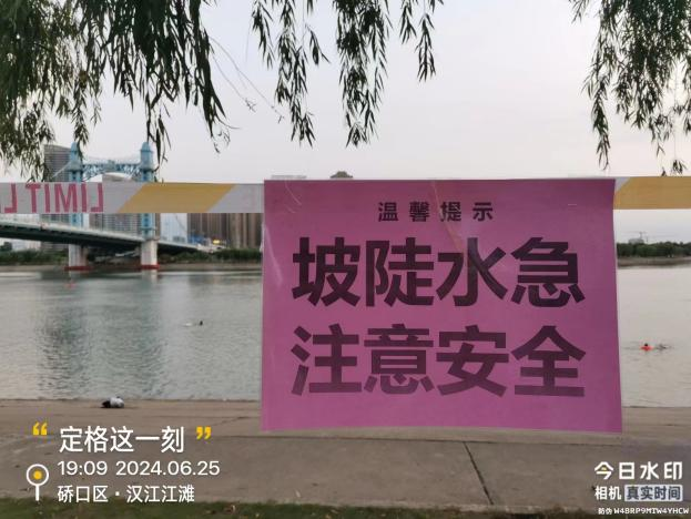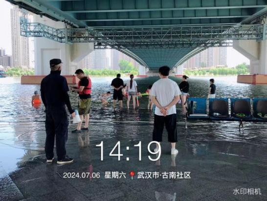加强防溺水等安全宣传。硚口汉江湾江滩为加强汛期安全防范和保障游客自身安全,首先做好提示工作,在封闭闸口处设置请勿翻越的告示牌;沿线拉设警戒带,设置防溺水安全温馨提示70多张,悬挂横幅16条,新购置移动喇叭10套进行不间断循环播报。其次根据水位情况及时调整警戒线,并检查30处“四个一”救援设备是否放置到位,以确保发生溺水险情时能及时进行救援。再次是落实危险水域点位的劝导工作。在人流量较大的时段增派人员巡逻,对重点点位如江汉六桥、江汉七桥下涉水游玩的市民进行劝阻,防止溺水事故的发生。最后是联合杨家河派出所开展24.5险段周边钓鱼清理整治行动,重点对沿岸钓鱼、嬉水的市民进行劝离,并向围观群众宣传防溺水知识,增强安全防范意识。