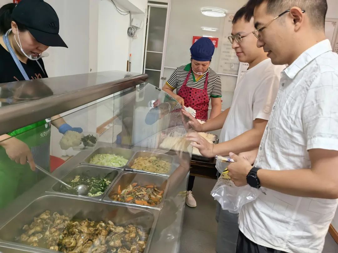 荣东社区是一个有着几十年历史的老旧小区,70%以上的居民都是老年人。2022年,社区建起幸福食堂,两荤一素套餐只需7元,专门服务老年人。荣东社区书记潘丽娟介绍,去年4月,幸福食堂第一次出现外卖小哥排队购餐的身影。“我们意识到,社区周边有很多写字楼和商圈,幸福食堂或许可以成为周边年轻人用餐的新选择。”