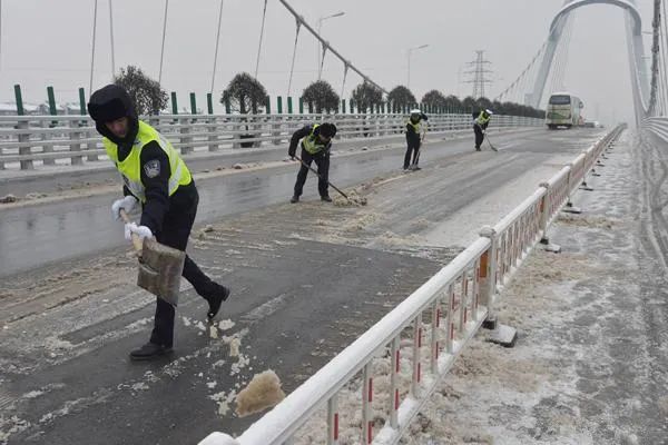 交管部门相关负责人介绍,为应对即将来临的雨雪冰冻天气,确保交通安全、畅通,武汉交警在28日上午召开全市交警工作部署会,启动恶劣天气紧急预案。武汉交警将在全市范围内的桥梁、高架、陡坡、涵洞等易结冰路段增派警力,加大路面巡查力度,及时排查安全隐患,在易结冰路段提前安排民警进行交通疏导,设置标志标牌。安排“快骑”力量加强辖区巡逻频次,对路面发生的交通事故、交通拥堵等突发警情,要快速出警,快速清撤,快速恢复通行。