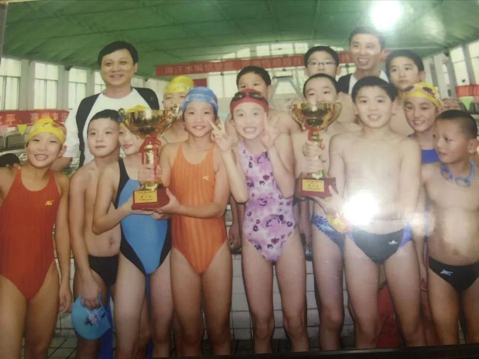 ▲ 儿时泳队合影(前排右二)