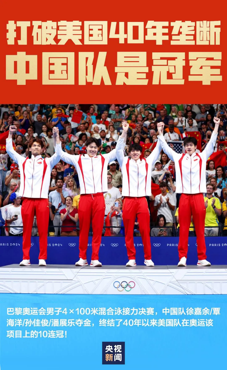 在巴黎奥运会游泳男子4×100米