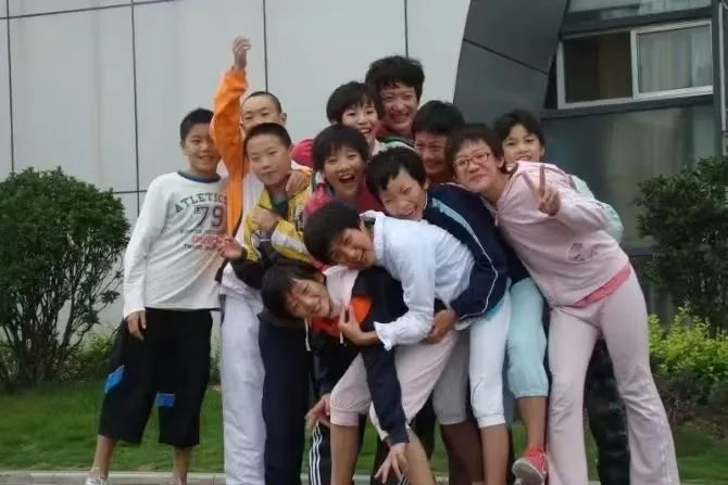 ▲ 与儿时队友合影(左一 着白色上衣)