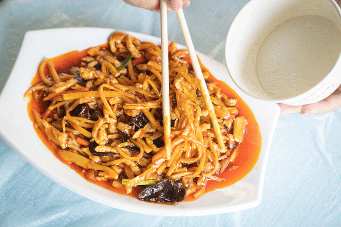 鱼香肉丝也是每桌都有的菜,酸度比家常菜会更高,格外下饭,吃饱了还能再来一碗。
