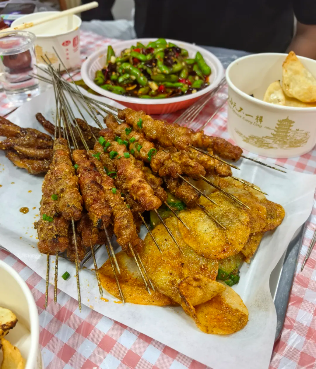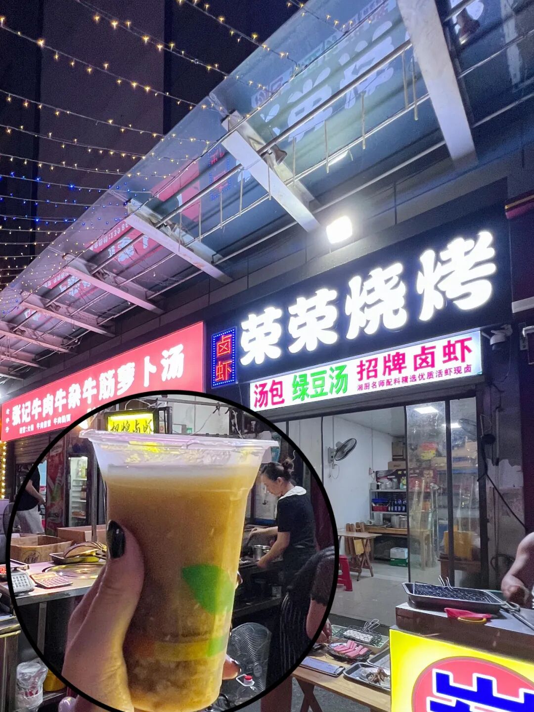 宵夜去张记也是一绝,已经形成了隔壁左右的“上下游产业链”,门口的湾子烧烤,隔壁的荣荣绿豆汤,吃的不舒服不准走。