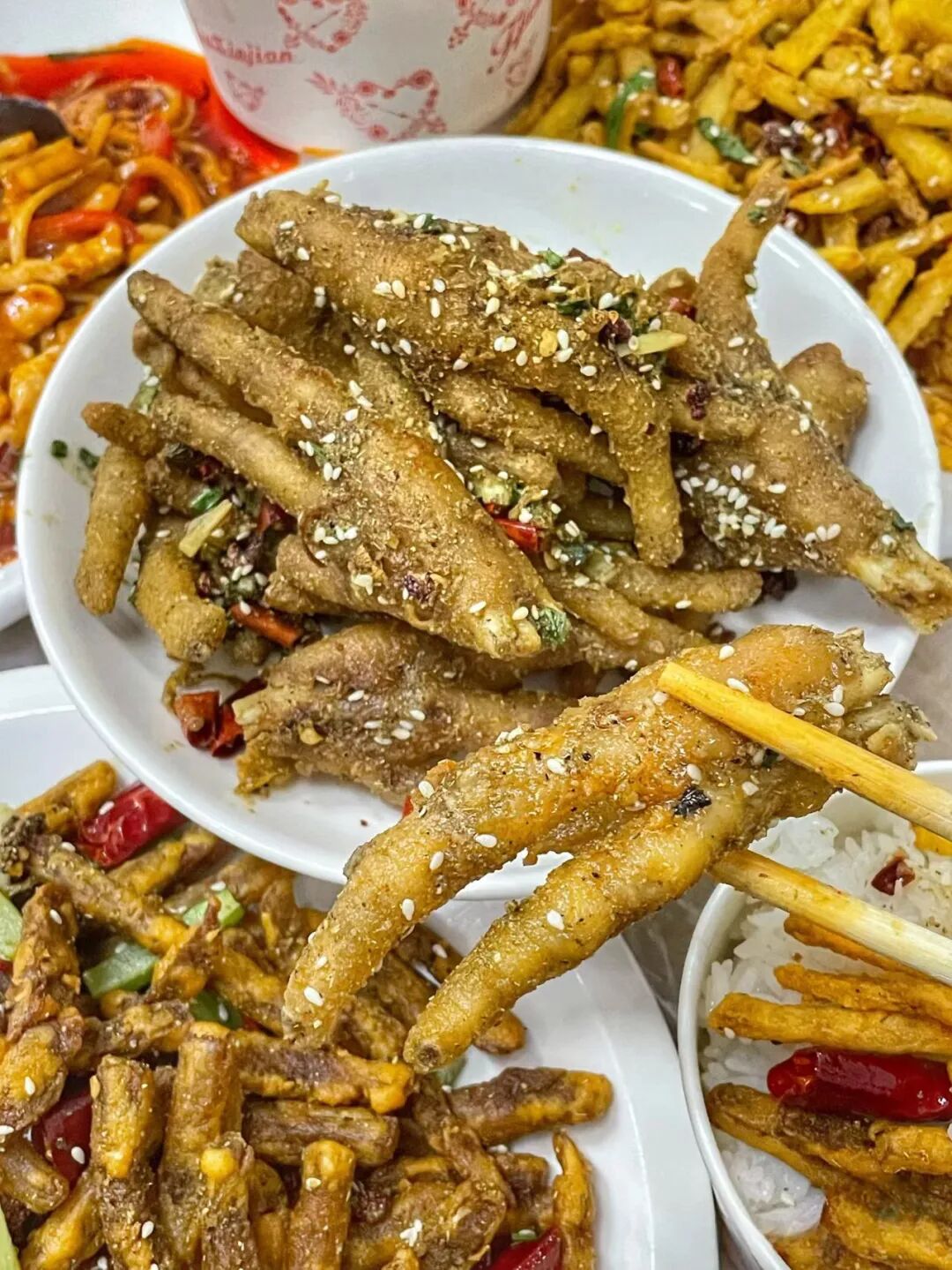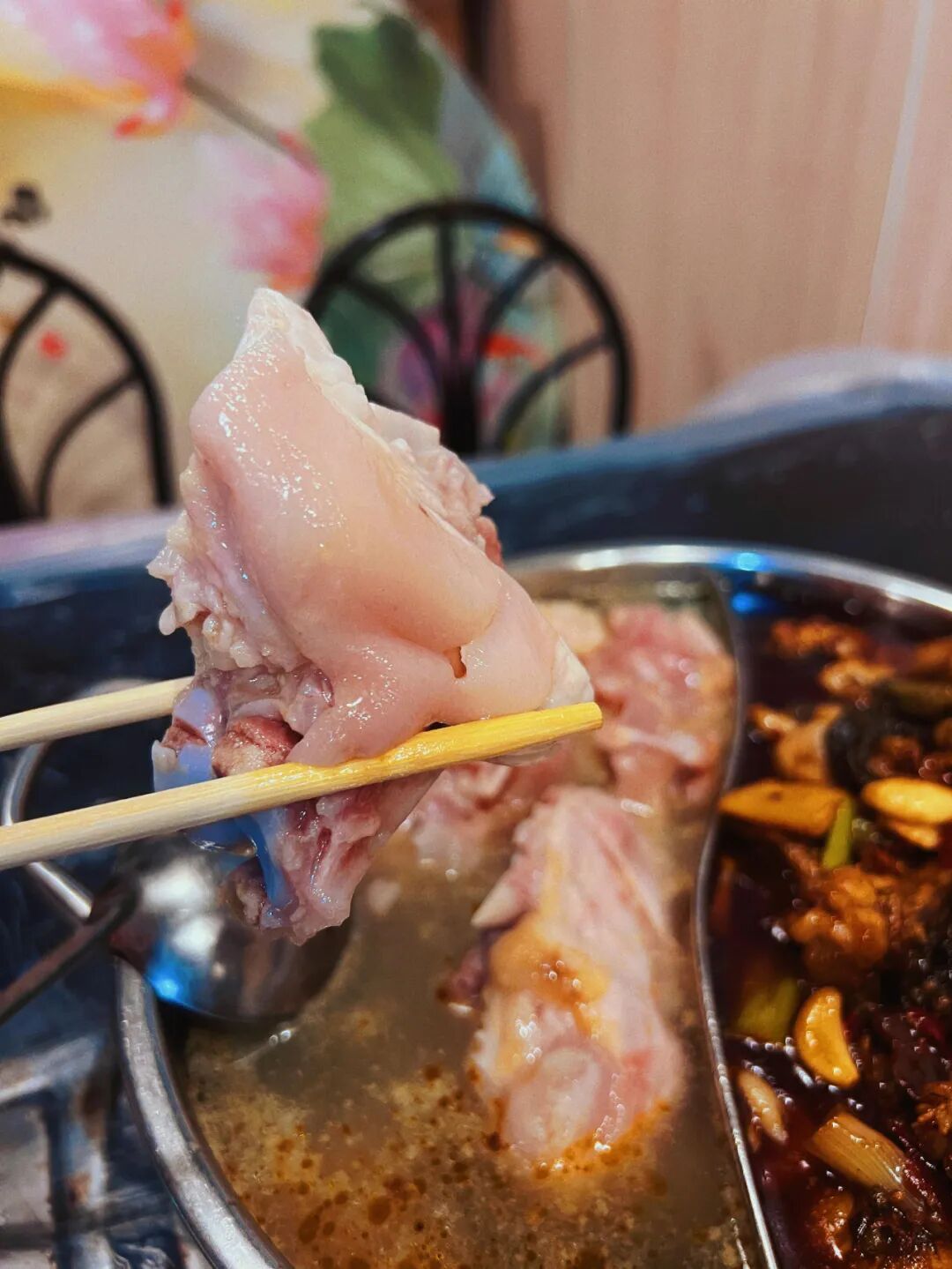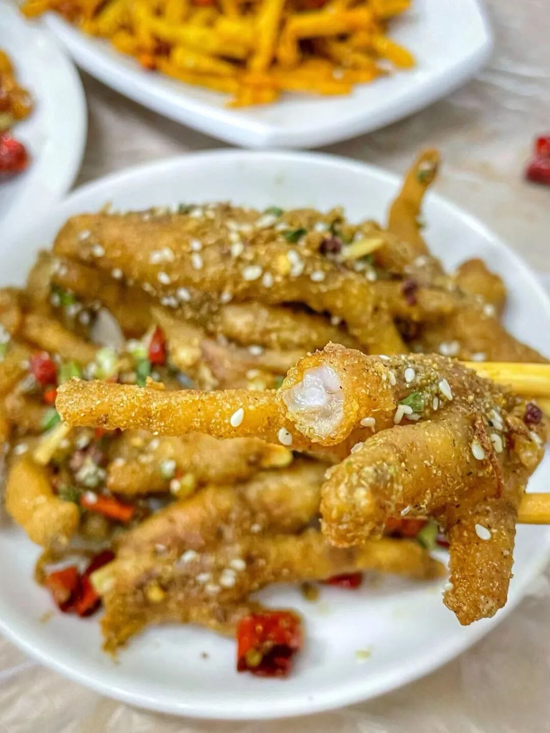 肉质醇厚,软糯弹牙,像是武汉烧烤店卤烤的鸡爪,但又不止于此,层次更丰富,入口是酥脆。