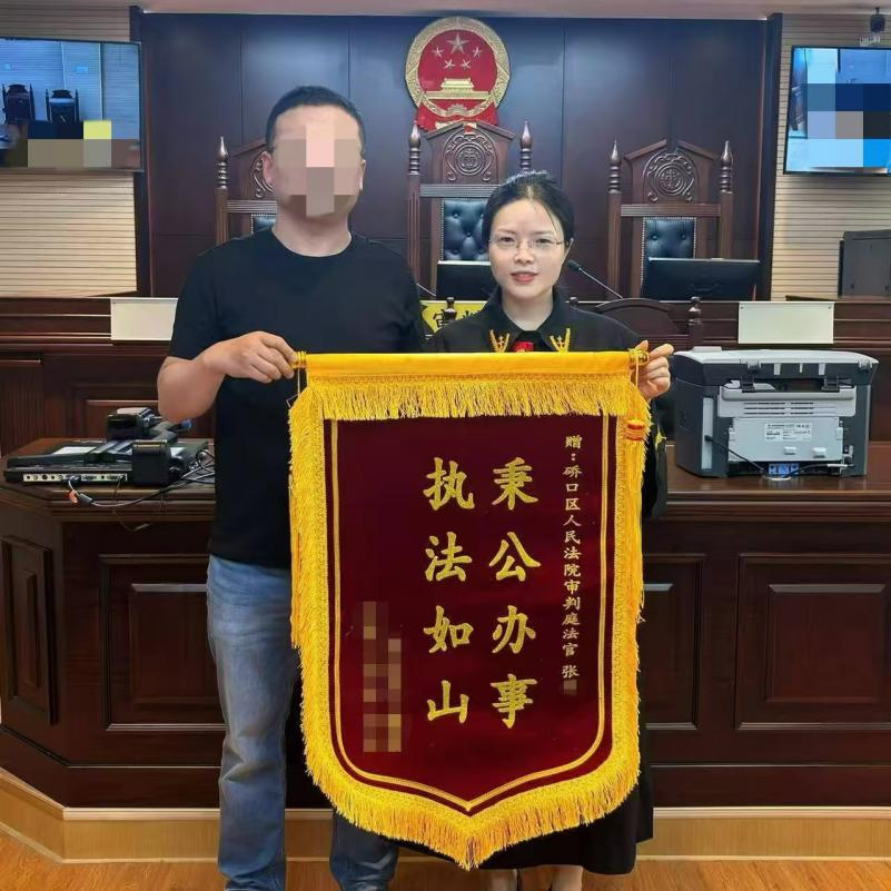 “我们两家公司是老‘战友’了,真要因为这笔货款伤了感情,于公司发展也无益。为了尽早解决问题,您把周末时间都用来帮我们对账,下班后还组织调解,努力为我们化解矛盾!”贸易公司代理人满怀感谢之情,将锦旗送到张法官手中。